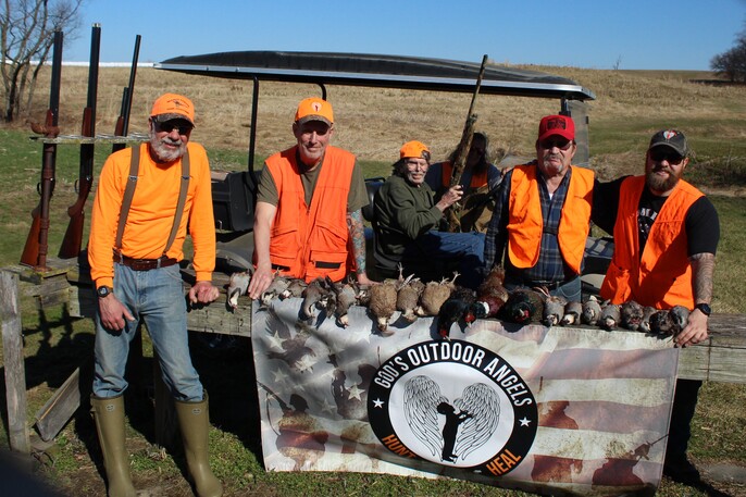 GOA enjoyed hosting 4 navy/marine veterans on an Upland Bird Hunt at the Rose Hill Game Preserve in Culpepper, VA. The day began with breakfast and ended with the veterans bring home their harvest of pheasant and chukar.